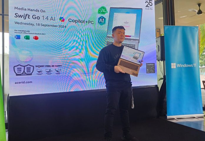 “Acer Swift Go 14 AI hadir dengan desain tipis dan ringan, yang cocok untuk pengguna on-the-go. Dilengkapi layar 14,5 inci beresolusi WUXGA dengan refresh rate 120Hz, laptop ini menghadirkan visual yang tajam dan halus. Pengguna juga bisa memanfaatkan fitur AI seperti Auto Tracking dan Eye Contact Correction dari kamera QHD AI Camera 1440p,” ujar Matius Tirtawirya, Consumer Notebook Product Manager Acer Indonesia disela peluncuran Acer Swift Go 14 AI di Jakarta, Rabu (18/9/2024).