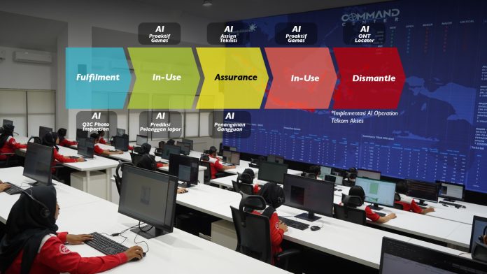 Sementara di Operation, pemanfaatan AI difokuskan untuk mendukung kinerja teknisi dan meningkatkan kualitas layanan. Beberapa aplikasi telah dikembangkan dan terintegrasi, antara lain Lensa, iBrite, dan iBooster, yang mendukung proses mulai dari pemasangan (Fulfilment), pemeliharaan (Assurance), hingga pencabutan layanan (Dismantle).