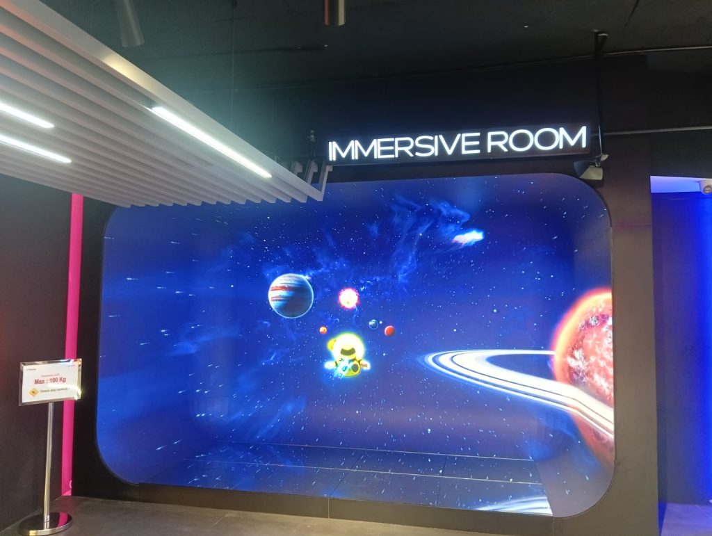 Selain itu, terdapat Pillar Display dengan layar LED melengkung mengikuti struktur pilar, menciptakan tampilan visual dinamis. Area Immersive menawarkan pengalaman visual mendalam dengan layar LED yang mengelilingi ruangan, sementara Hanging Display dirancang untuk kebutuhan event dan advertising dengan visibilitas tinggi.